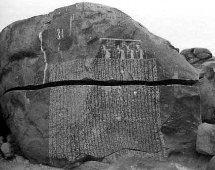 Farao spør etter hvem Gud er. Innskripsjonen er en påminnelse fra et senere presteskap om at de har avtaler fra den tid om at de ikke skal pålegges å betale skatt. Dette stemmer også med Josefs forordninger i Bibelen; Josef fastsatte en lov for hele landet Egypt, helt til denne dag, at Farao skulle ha en femtedel. Bare prestenes jord var unntatt….1.Mos.47:26. Over 1000 år senere, finner altså presteskapet grunn til å minne om dette i innskripsjonen.